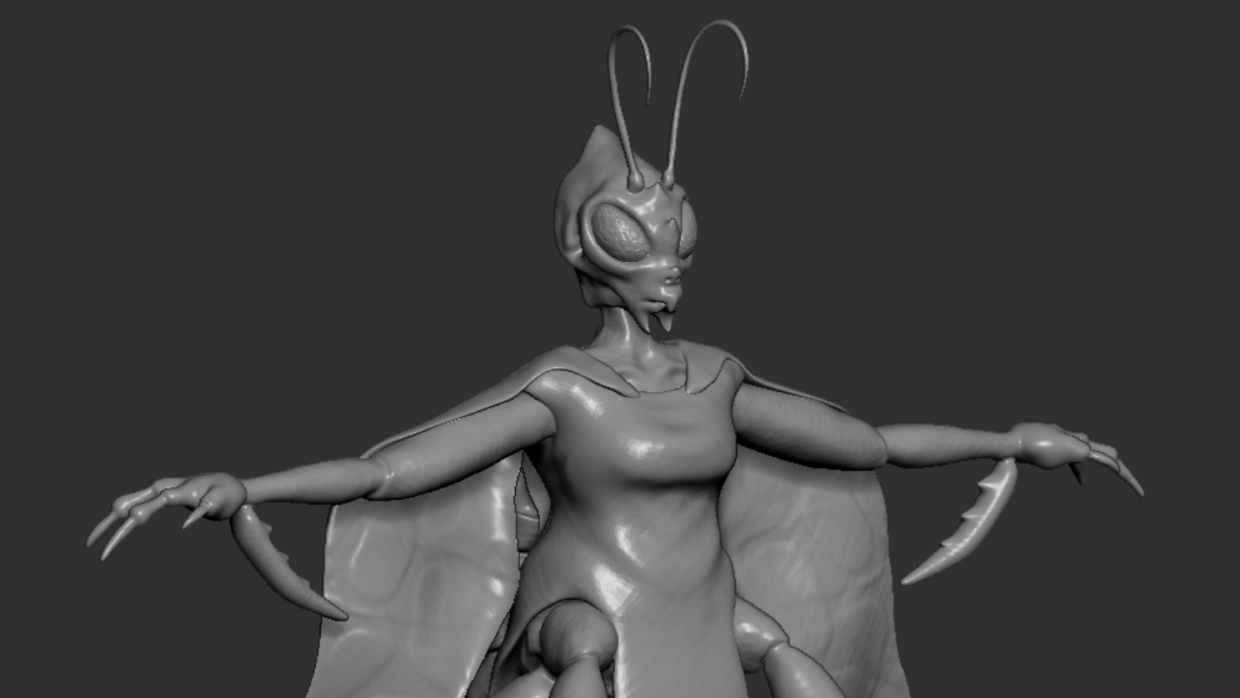 The project was to sculpt a human / animal hybrid in ZBrush. I chose to create a human / mantis hybrid.